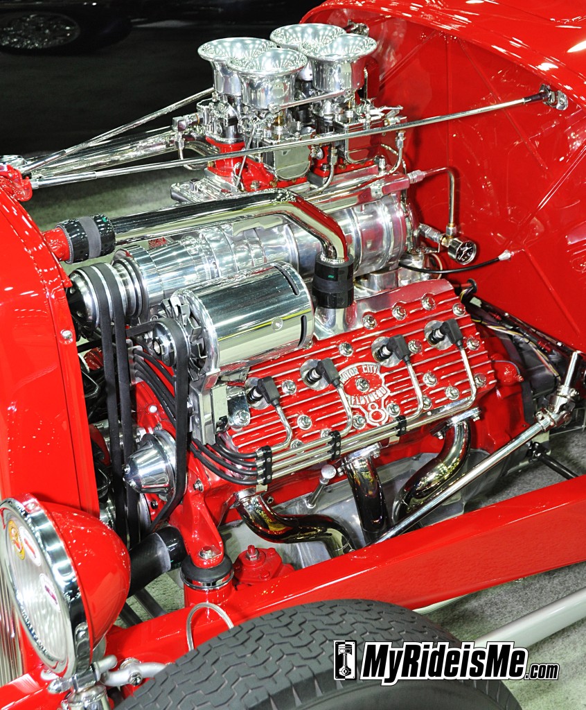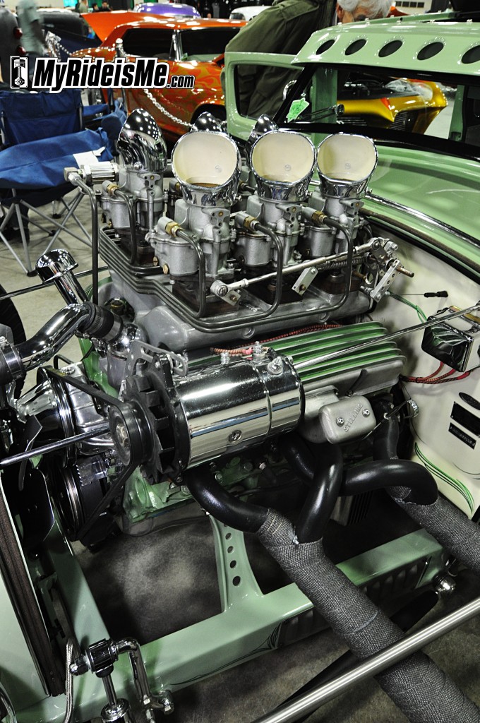 Just like when I shot the “17 best wheel and tire” story from the 2012 Detroit Autorama, I made my way around the show shooting the best hot rod engines too. just like wheels and tires, and especially in a hot rod (cause you can see it most times) the engine says, “My Ride is Me” and sets the tone for mild or wild, traditional or… more towards the street rod style. Whatever the case, the shine and for an outside show, the rumble let’s people know what’s on your mind. What are these folks saying??