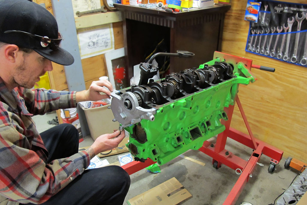 In the meantime Ethan worked on some of the final engine assembly. Perhaps you were wondering if Falcon’s inline-six would be going back in – and if so, did I already rebuild it? Yes and no. The original 144 straight-six will be going back in the car, but not just yet. I haven’t rebuilt it, but it’s in my plans to. (I know it isn’t economical, but it’s a great opportunity for me to do my first engine rebuild. And with Studie as my hot rod, I’d like to keep Falcon more original.)