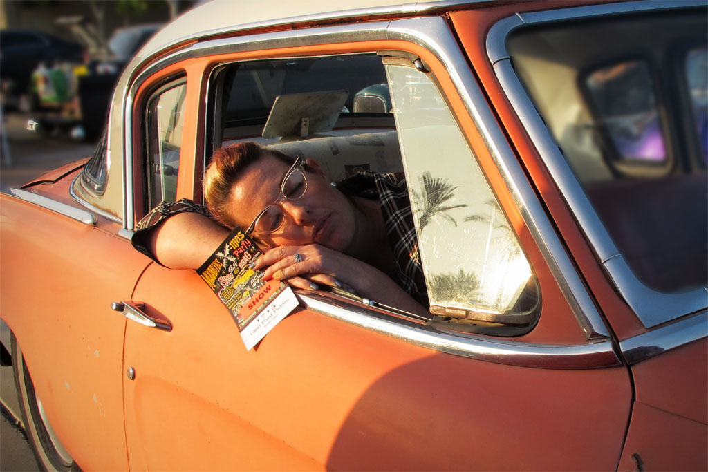 We continued working nearly 5 hours past the time initially scheduled to leave. Exhausted and delirious, it became obvious that there was still a good amount of time that needed to be spent checking over the car if we wanted to insure its safety before hitting the road. Knowing that we didn’t want to take that risk – nor miss the entire day of Mooneyes…we decided to call it quits for the day and Kristin drove her 1955 Studebaker to the show.