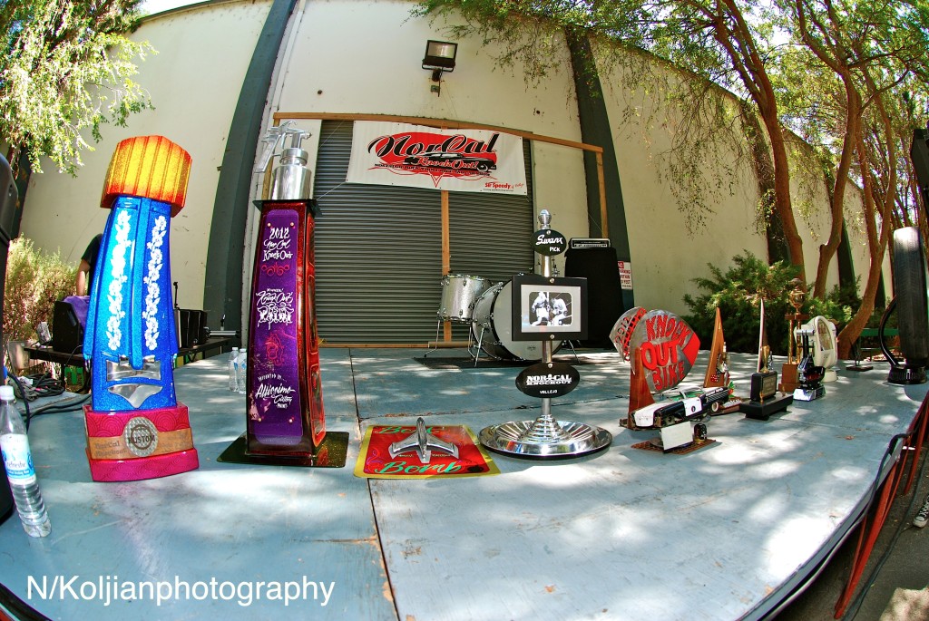 After the bands played it was award time. All the awards were custom made and were pretty impressive. This years NCKO awards had some new categories. These new categories were very original and gave kudos to people that sometimes get over looked like Best Young Builder award that went to Mario Messa and his 62′ T-Bird. Most Likely to Get Pulled Over Award that went to Tyler Glenn of the NorCal Knights CC. KnockOut Vendor went to El Gato Negro. How could we forget the NorCal KnockOut 1st Annual KnockOut Stash Contest hosted by yours truly with the winner being Larry McClure. Oh yes, we can’t forget the raffle. This year NCKO gave away a 1962 Ford Ranchero striped by Ralph “Moochie” Finaley. Uh… how cool is that! All total there was 15 awards passed out. If you want to know the whole list of award winners you can go to http://norcalknockout.com/trophyclasses2012.html and check it out.
