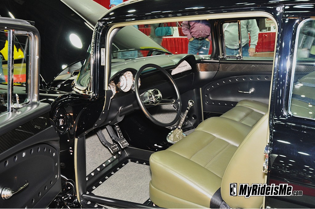 Check out hot rod and custom car rockstar, George Poteet’s 1956 Chevy. I just featured his 57 Chevy from GNRS, then he rolls out this? Design, fabrication and paint was handled by Kemp’s Rod & Restoration and the fine interior comes from my buddies at Rad Rides by Troy. The only reason this car wasn’t a Ridler contender is George didn’t want it. He’s already won the Ridler in 1996 with his 1937 Roadster, so this car was on display in Pomona at the 2012 Grand National Roadster Show.