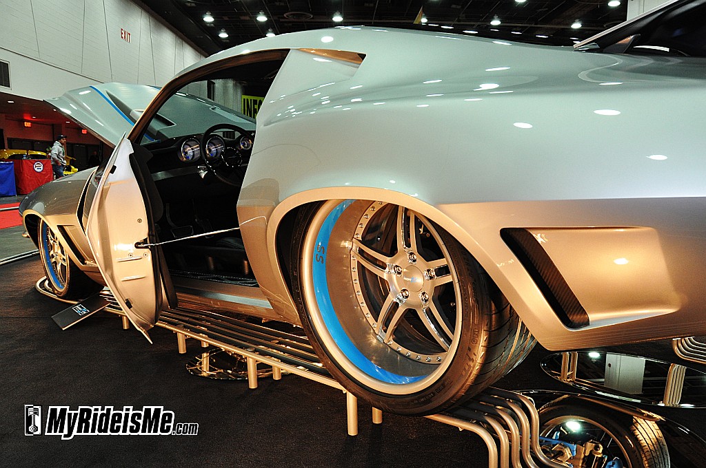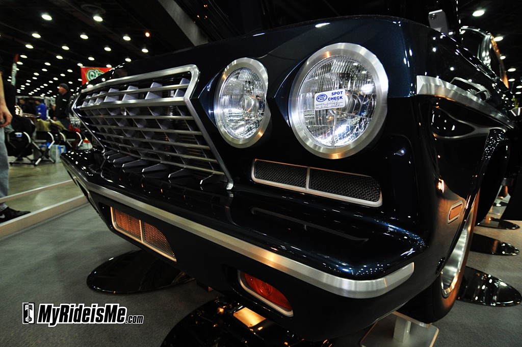 Dave Leisinger’s 1971 Chevy Camaro may be my favorite of the show. That’s strange for me cause I’m not a huge 2nd gen Camaro fan… But this pro-touring style, massive tire tucking bad-ass is too cool! Why didn’t it get picked? In another wave of total speculation, check out the engine compartment. I’m wondering if the judges take points/look down on a massive engine cover? I’m also submitting this tire/wheel combo to my “Top Wheels and Tires” story coming soon.
