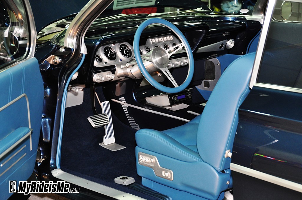 The 62 Chevy is called last date because the owner and his wife had their first date in a 62 Impala. The owner said this is the last show car he is going to build. Thus the name last date. It would take days to study all the custom parts he created for this car. The final bodywork, paint, and upholstery were the only things not done by the owner. He even machined one off stainless bolts for the entire car.