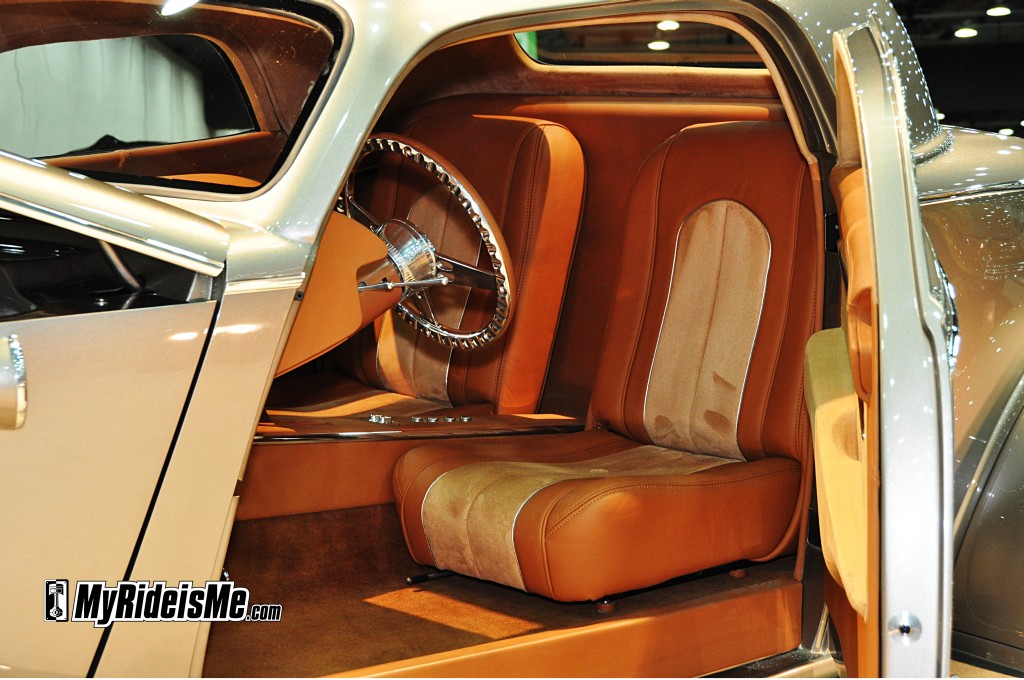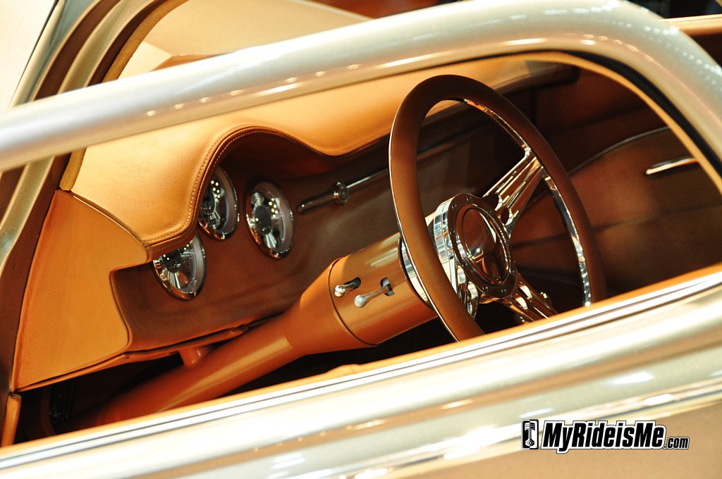 This 1933 Hot Rod Ford coupe owned by Gregg and Jodi Blackford was built, coincidentally, by Hot Rods by Greg (one g). I’m pretty sure this car was intended to be a Ridler contender from Greg’s website that says, “Caliber” is “Going for the Ridler Award in 2012.” No idea why it wasn’t a finalist, really… the only thing I could say is that the engine compartment wasn’t as mind-blowing as other contenders and maybe the judges were tired of this display. You’ll see it in three other cars featured in this story.