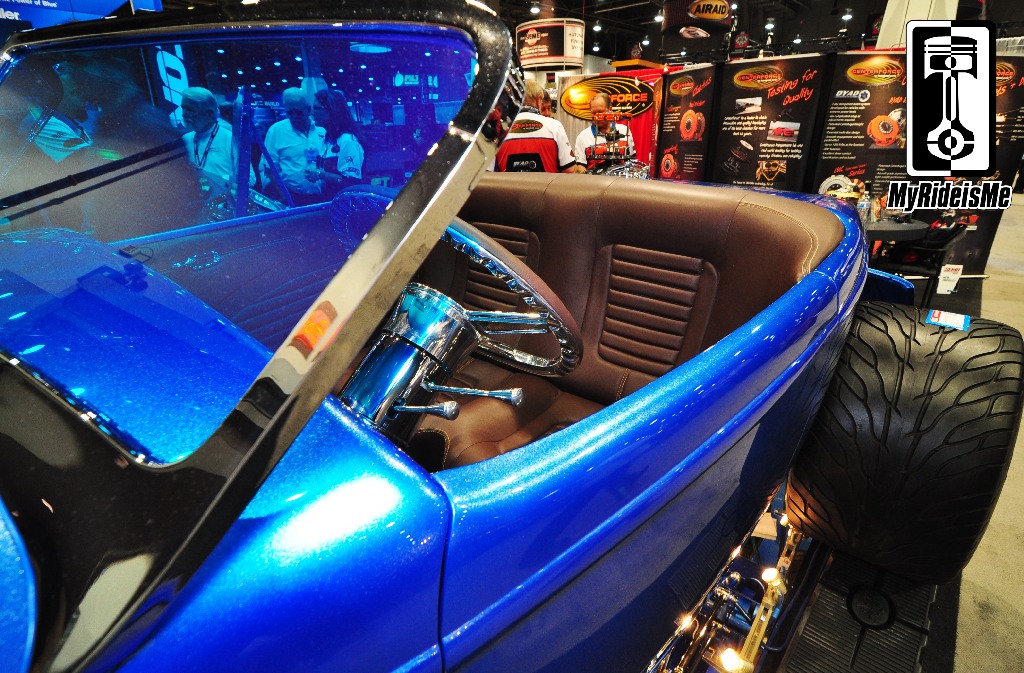 In case you hadn’t guessed… I was pretty impressed with the powertrain… but, overall, this is a great looking car! As one of the very first hot rods I saw on the show floor, I couldn’t help stopping to take pictures. The paint, the interior… GREAT hot rod stance. It’s a winner in every way with custom details and finishing touches everywhere. I don’t think it’d take much for this car to be a contender for America’s Most Beautiful Roadster.
