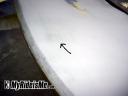 Next, we need to add some filler. I mixed filler 1 time and it “kicked” so fast, I could barely spread it. “Kicked” refers to the chemical reaction between the filler and the hardener. With more hardener, the kick happens quicker. Not enough hardener and the filler will never get completely hard. Believe me, that’s a gooey mess. I made that mistake too. There’s instructions on how much filler to add, but you’ll more then likely have to experiment. We’re mixing outside in Arizona in July. It’s damn hot! In 100+ degree temps, if you add the hardener per the instructions, you better be fast! Matt mixed up just a little filler to show how much hardener he’d use and also, how to properly mix it. The mixing’s really important for a uniform kick and also to minimize the chance for air bubbles in the filler after you’ve laid it down. Keeping the filler on one side of the putty knife only, Matt says to “flatten and fold” the filler until the color is uniform. The hardener color is much brighter then the filler, so you know when it’s not mixed well. After less then a minute of pulling the filler flat, flipping, then repeating, it was ready for the valence. Check the video.