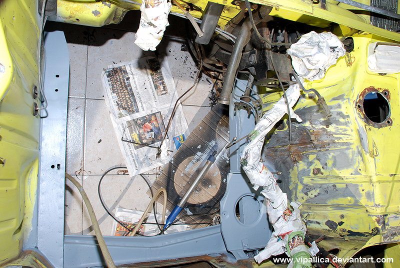 But the thing that took the most time was to clean up all the parts of the engine, transmission and the interior. There were also some parts of the body that needed to be welded (the footwell on both sides). And of course we installed a new exhaust and reworked the rims+got new tires (tires mustn’t be older than 10 years or you won’t pass the security inspection). We did all this work in just 3 weeks, because I wanted to go to Switzerland. Well we passed the security test without any big problems, even though the car still needed some work.