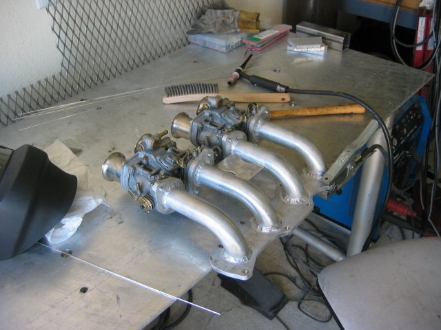I’m not sure when I started working on this project, but it was at least 4 years ago. I wanted to build a trick intake setup for my Pinto Powered Roadster called Bonnie. Bonnie’s always turned heads, even parked next to MUCH higher dollar rods. I have to admit that I like that. The intake design is from a tech article I read from the Inglese website. It explains why individual runner intakes and weber carbs are the hot setup.