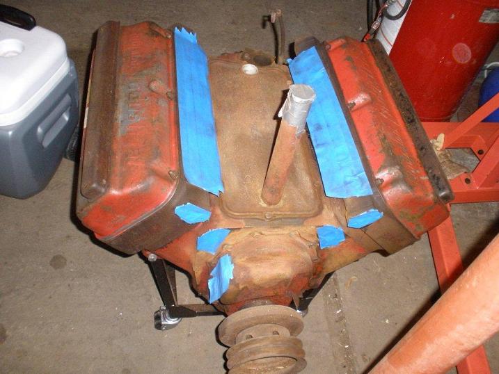 The 354 Chrysler Hemi heart of the car at Booth-Arons in Michigan before work commenced (source Sam Eidy)