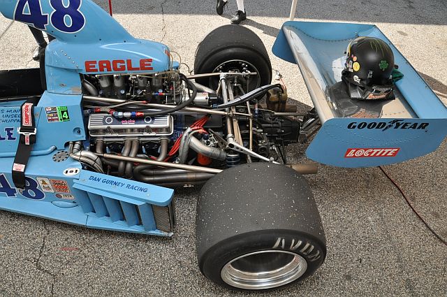 Ed Pink Racing Engines’ proprietor, the upbeat Tom Malloy reclining in his folding chair under his transporter awning said, “Come on in and take a look at my McLaren M8E, if you’d like.”