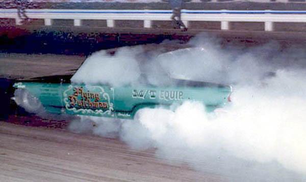 “The MAN ! “Fast Eddie”, this car was unbeatable in 1967. If he showed up at any East Coast vs. West Coast funny car meet, then us Chevy lovers could pack up and just go home! I remember the rubber marks this car would lay down on the track. Check out this smokin’ tire wheelie!”