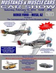 The public is invited to attend the Commemorative Air Force’s (CAF) Arizona Wing Aviation Museum’s Mustangs & Muscle Charity Car Show, sponsored by Berg Ford on Saturday, February 13, 2010. This shows theme features WWII P-51 Mustang fighters, along with both classic and new cars. The car show is open to all makes, models and years of muscle cars, street rods, 4X4’s, Exotics, Imports and motorcycles. Come see the cars cause this show is SOLD OUT.