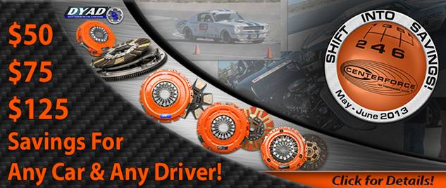Centerforce, manufacturer of performance clutches, announced a consumer rebate for all Centerforce products! From May 1st, 2013 – June 30th, 2013, Centerforce customers can get up to $125 back when they purchase Centerforce product.