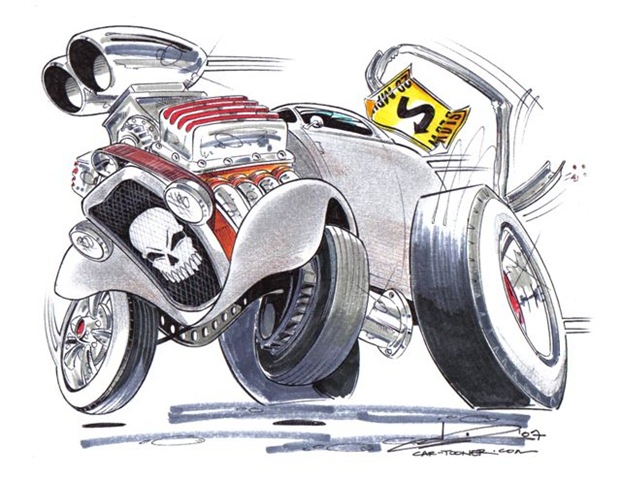 The artists and illustrators I’ve featured on MyRideisMe.com all are super talented and I could easily recommend them. In talking and getting to know them, I’m seeing a trend in the people that make art, especially car art, their living. In talking with Scott Fisk from Studio 669 and CAR-TOONER.com, I’ve found some of the same important features I see in Brian Stupski from Problemchildkustoms.com and from Jimmy Smith from Jimmyshotroddesign.com and it’s my suggestion you look for these 2 qualities in your next artist:
