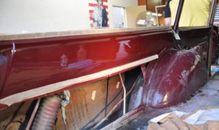 Ford Falcon Gas Door Relocation - No More Gas Cap As I continue to fill you in on the progress of my 1963 Ford Falcon wagon build/restoration/customization/marathon, feel free to follow along here: 1963 Ford Falcon Wagon Build I had someone ask me about what I did on the gas filler door on my 63 Falcon Wagon after seeing it painted. Here's the update on that... Could there have been a worse place to put the factory filler tube? The filler was relocated on my 63 Falcon Wagon before I bought it, up onto the top of the rear quarter panel. The original owner shaped a piece of sheetmetal, then threw a hinge on it with a cabinet "pop-lock" thing to keep it shut. It looked bad... lots of bondo and for some reason, the door opened "suicide" or the hinge was on the back. I was afraid it'd pop up at speed. See below. Rather than try to fix what was there, I searched around and when I had the body work done (one of the only things the guy did well) I had this pop-up filler installed....