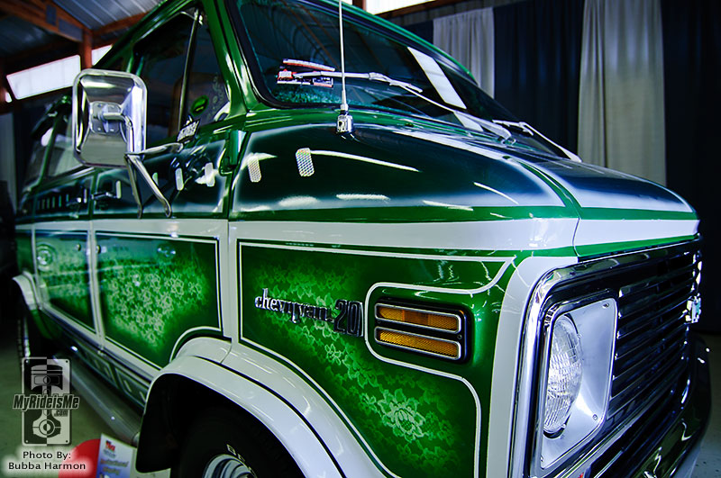We ducked back inside briefly to escape the blazing afternoon sun. Actually, for a mid-August day the temperatures were perfect and the humidity was bearable. Inside, we found Scott Kauffman’s 1974 Chevy van called “Emerald Express.” I was really digging all the green lace paint.