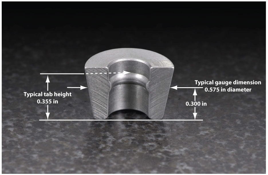 As expected, the locking tab fits into the keeper groove. Whether the tab is formed as a radius or with square shoulders, its most important portion is its top region; this is where it interfaces with the keeper groove on the valve stem. Square tabs usually protrude into the keeper groove about 0.011in or 0.012in; radius tabs 0.020in to 0.022in.
