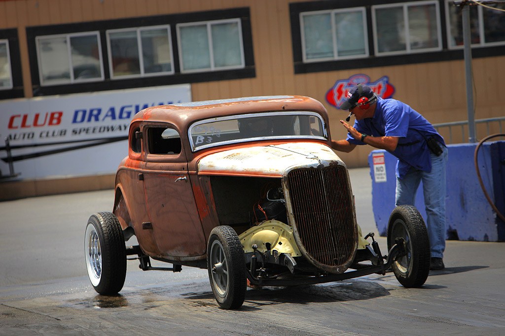 Now about the racing part of this story. Like we mentioned earlier we first saw the ’34 at the race track. During one of its trial runs the TH-400 blew out first and second gear, so it had to be raced in slower bracket class on account of having just D or the 3rd gear. One thing is for certain, we look forward to seeing the ’34’s progress and catching glimpses of it at race tracks around California.