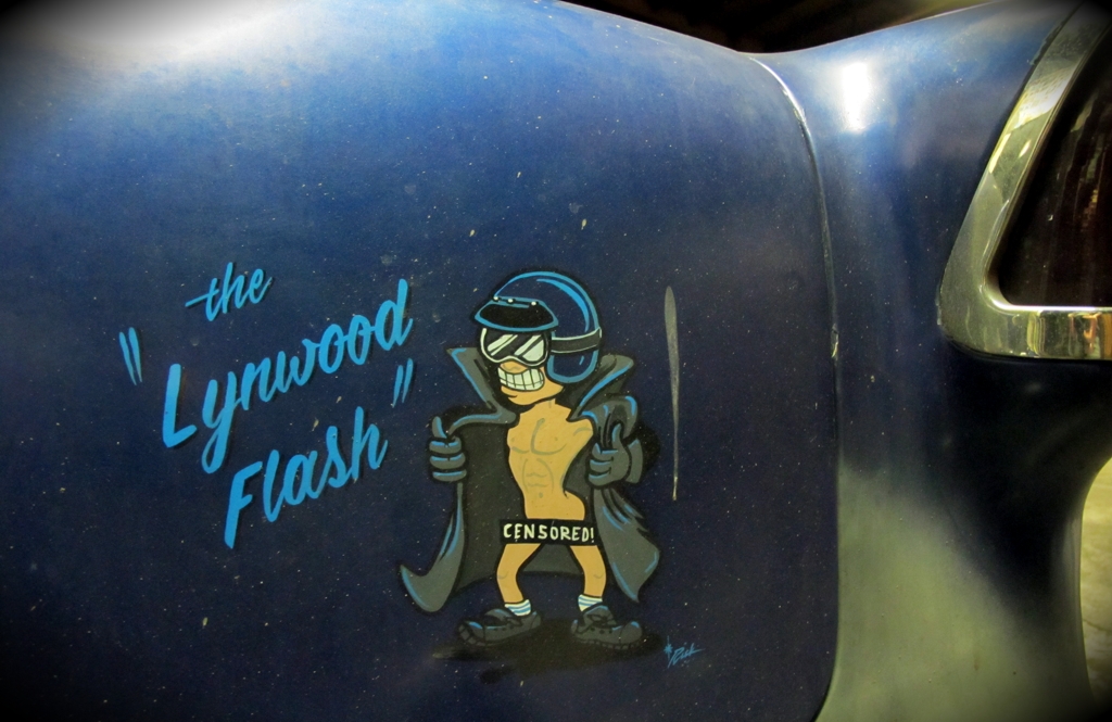 Adding to the old skool charm of this racer is the custom painted figure on the trunk lid…it’s the flash himself. Ya gotta love a little humor!