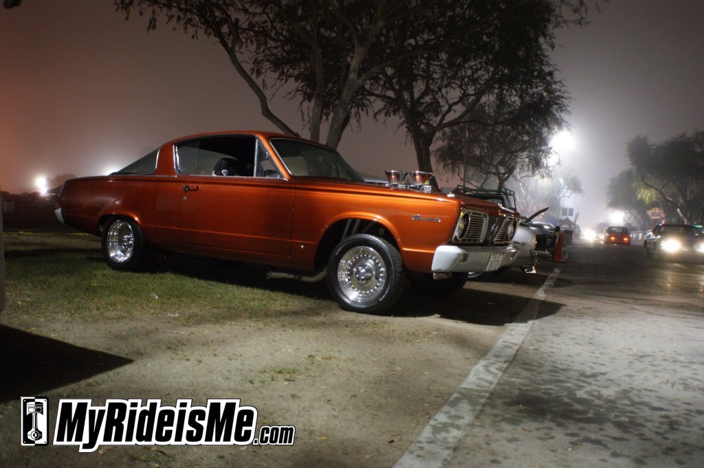 Folks come in EARLY! This Barracuda enjoyed the rain-like dew falling from the trees after a morning of fairly heavy fog. My roadster got the same treatment! Standing there, it felt like it was raining.
