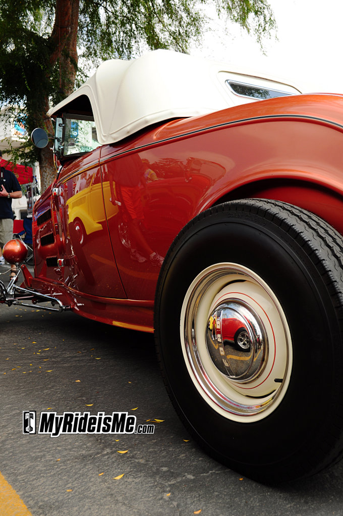 Other than that, I usually give the nod (and photos here at MyRideisMe.com) to nostalgia-styled hot rods. I love steel wheels with simple hub caps and either tall black walled tires or the occasional wide white. It’s simple, classy and timeless. How many hot rods have you loved but wished they had different wheels? Or how many have you seen then said, “That was built in the 80’s” simply by looking at the wheels? You can’t go wrong with the steelies!