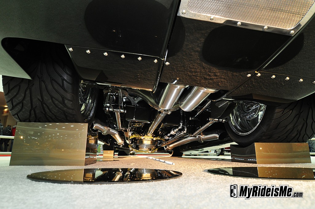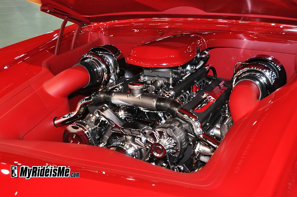 Like the Shelby above, I was drawn to this 55 Thunderbird. Why not? The lines on 55-57 ‘bird are pure sex. I shot a few pics and nearly kept going until I saw the engine. Twin Turbos anyone? Listed only as a 1150 HP Gale Banks Engineering 6.0 liter, I gotta know what this thing sounds like… I’d also recommend some titanium “oh shit” handles since this car can’t weigh much more than it’s stock 3200 lbs. This is one of the few super-cars in Detroit I saw connected to an automatic trans.