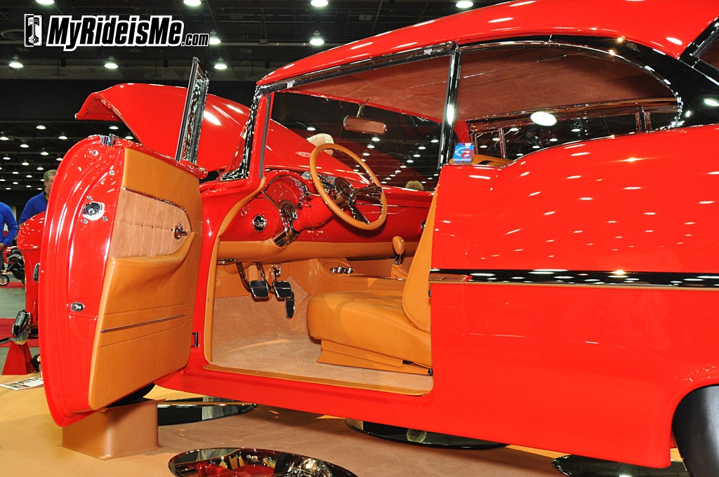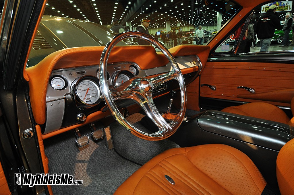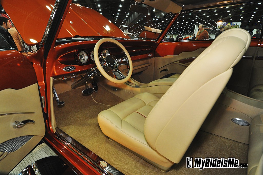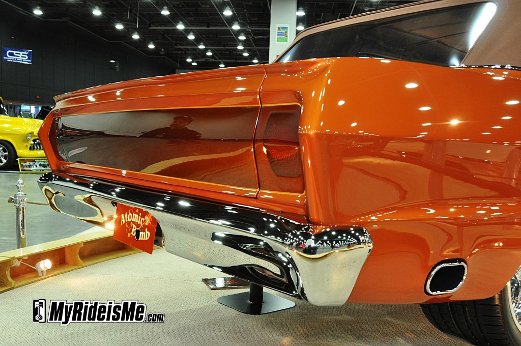 Superior Autoworks rolled in the “Atomic Bomb” 63 Nova SS Convertible, but luckily nobody panicked. Instead, like me folks stood back and took in the craftsmanship that put this Nova in the running for the Ridler. My favorite part was either the smoothed, custom taillights shown, or the grin on the face I saw pasting the “Great 8” sticker on the window. Most can only imagine the effort needed to bring a car like this from a drawing board to Cobo Center.