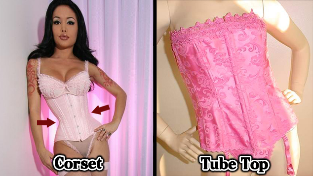 30. Ok this one is one of the things I hate most. Now let’s get it straight the one on the left is a corset. It shapes it flatters it has boning, it’s amazing. The one on the right is a big rip off that every one has in multiple colors and looks good on almost no one; it’s basically a glorified tube top. I personally hate them and refuse to shoot any one in them… So please invest in a real corset and lose the tube tops