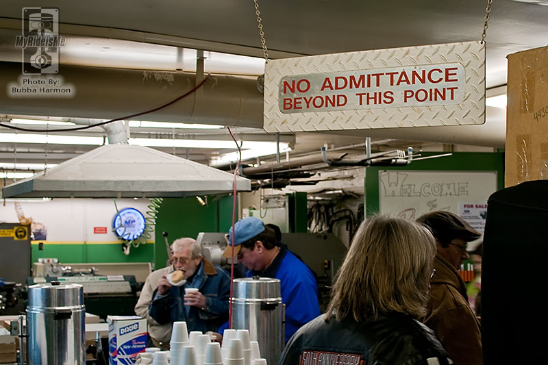 Well, that and a chance to hang out with other car enthusiasts at the POSIES annual open house. Posies Rods and Customs, best known for their Super Slide Springs, swung open their shop doors to the general public on the morning of Jan 9 from 8am until noon. Ken “POSIES” Fenical was there to greet everyone and treated us like old friends. This small shop, just a few miles outside of Hershey in Hummelstown, PA, likes to say they build “statements” rather than cars. “Anybody can restore an antique. . . it takes a real man to cut one up,” as one of their t-shirt says.