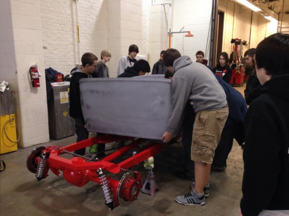 One of the students actually designed up the initial look for the truck, taking some inspiration from a Ferrari photograph he had seen. But all the students get an opportunity to be part of the project, whether they have specific experience with a certain process or not. “We work to get everyone involved and it is that team spirit (and access to lots of hands) which makes the cars come together fairly quickly.”