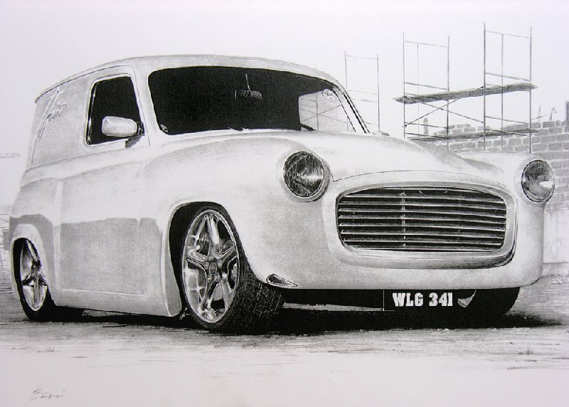 Here’s something I drew quite a while back. It’s called a Hillman Husky, of which I know little to nothing other than the owner dropped a Ford Cosworth engine in this one to make it go faster than it was ever intended!