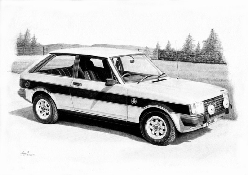 Next is a Lotus Sunbeam. My neighbor has a bit of an 80’s car fetish and he owns a number of Sunbeams, one of which is this example which I drew for him. Not my cup of tea to be honest but a nice car all the same and he was very pleased with the finished piece…