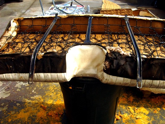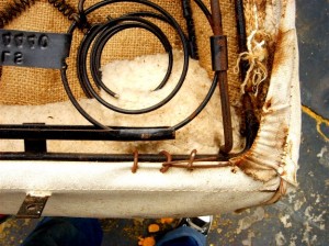 I didn’t have any problems with my seat frame in its original condition, so you’ll have to be the judge on your project. However, if springs appear to be out of place or there is excessive rust, you’ll need to do some work on that before refoaming. Sometimes springs can just be re-wired back into the correct position. Other times you may need to replace a spring – or perhaps the entire seat.