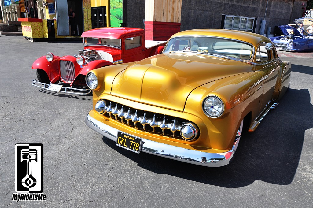 All three rides, the 32 Pickup, the 53 Chevy Coupe and the “55 Ford” you can barely see in the back were all driven in. After parking and before the crowds, I snapped off these shots. Next time I take my kids to Disneyland, I’ll arrange a tour and get to know these guys at their Stanton, CA shop. They’re breaking new ground as a three man shop and getting the media attention to prove it.