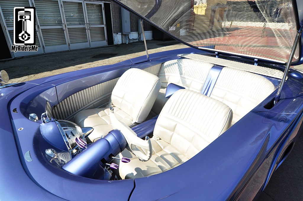 What you see here is a 1955 Ford. Yep. That’s what it started as, but according to Gary “Chopit” Fioto, all that’s left is the decklid and hood. Gary, and his sons Nick and Fabian of Chopit Kustom in Stanton, CA built this truly radical creation, completely out of steel In a 3 year build, Beatnik made it’s debut at the 2005 Fresno Autorama. So, this car’s been on the road for a long time! Gary drove the car in as well complimenting the air conditioning that keep him from suffocating underneath that huge bubbletop.