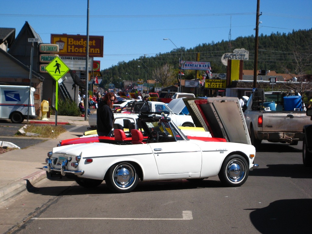 Now the cool part of this story is Randy flew one way from Phoenix, Az to Pittsburgh, Pa and drove it across the country and ended up at the “Japanese Classic Car Show” in Long Beach, Ca with it two weeks later. Then he drove it to this show in Williams. Randy has put 4000 miles on it in less than 1 month. Nothing like driving a vintage Datsun, across the country!