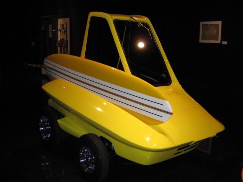 Taking cues from Mr. Roth’s Lilliputian land rover, I plugged in classic hot rod and So-Cal VW styling cues, and attempted to honor the master “hisself” (as he’d say) with a modern take on the little Surfite. Pop-out side glass? Check. Asymmetrical tail light treatment? Check. Aggressive stance? Checkity-check. Custom trim and mild re-work all over? Double checkity-check. Take a very unusual car and make it even more personal/unique? Check, check, checkity-check check!