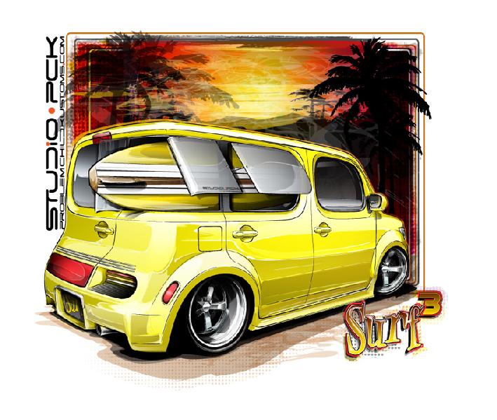 Surf3 doesn’t do it for me, but what a great idea! How about a bunch of Ed Roth inspired Cubes. Since no sunroof for the US, how about an Orbitron or Beatnik Bandit inspired Cube? Bubbles on the roof would be awesome!!!