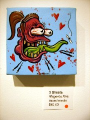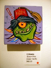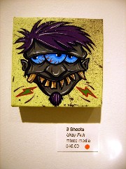 I’ve been to a few of these now and am pleased to report this show was just as high quality and fun as the others – with artist, 3 sheets, taking the spotlight. That’s enough of my blabbering, let me just show you the pictures! For more info on any of the work or artists shown, contact Gasoline Gallery or look em up on MySpace.