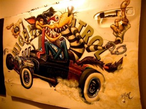Gasoline Gallery showing hot rod art/ low-brow by Big Toe