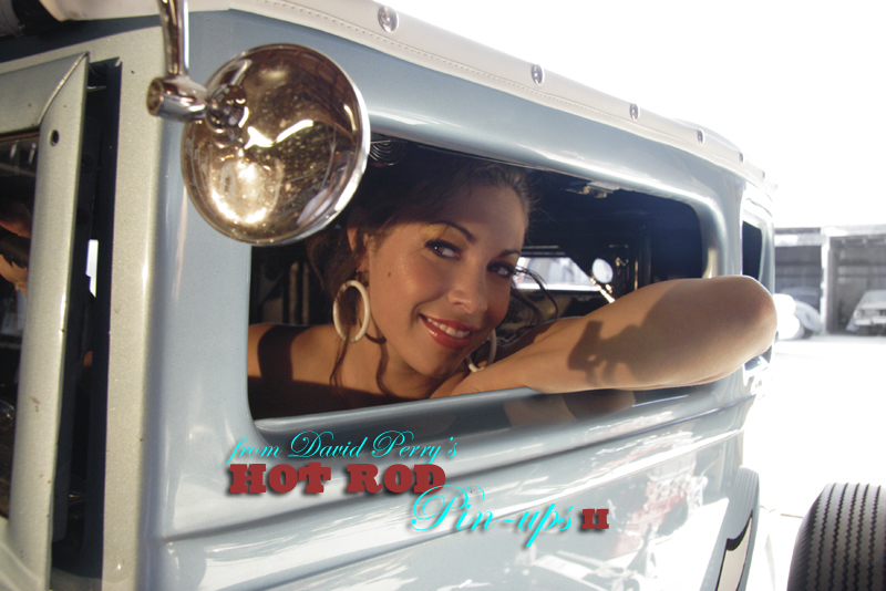 I recognized the the lovely Heidi Van Horne and I recognized that’s the cover from a book for sale in the MyRideisMe.com Amazon store. The book is: Hot Rod Pinups by, none other than, David Perry. Here’s the description of that book:
