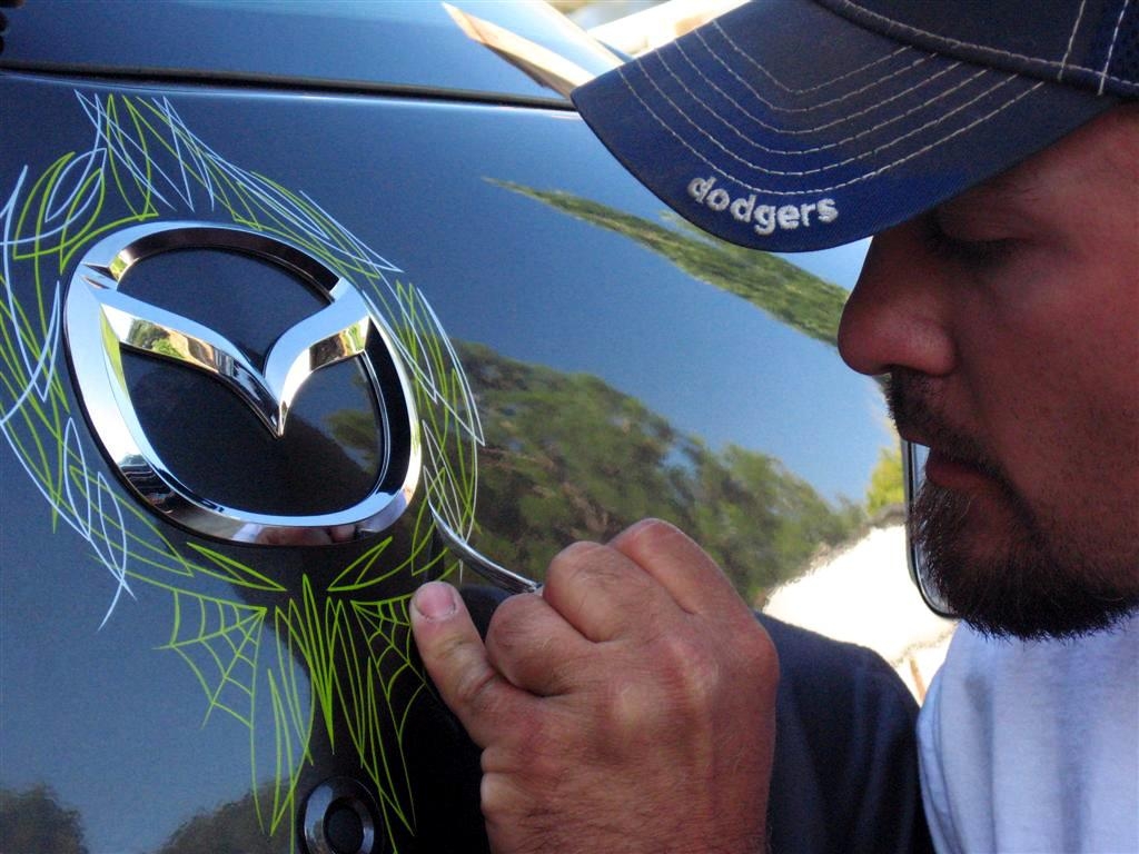 ‘Wizard’ has a few killer instructional videos that can help, and probably more so, watching the stripers at the car shows will give you a lot of insight on the process and tricks of the trade. Biggest advice would be to not give up or get frustrated! Be patient, and expect it to take some time. I started out using stabilo pencils so I could easily modify my stripes if I didn’t like them, I don’t have to do that now, and I owe it all to lots and lots of practice. I look at some of the stuff I did last year and I cringe, but it’s also nice to see the improvements that I have made.