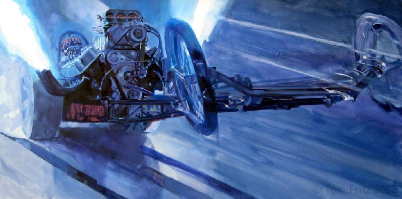 Tom, obviously you really know hot rods. Even in your loose style that expresses speed and action the detail is there without being over worked. You know the curve of a dropped axel, how the springs and shocks are mounted, what a 21 stud engine and 97’s look like and bias ply tires.