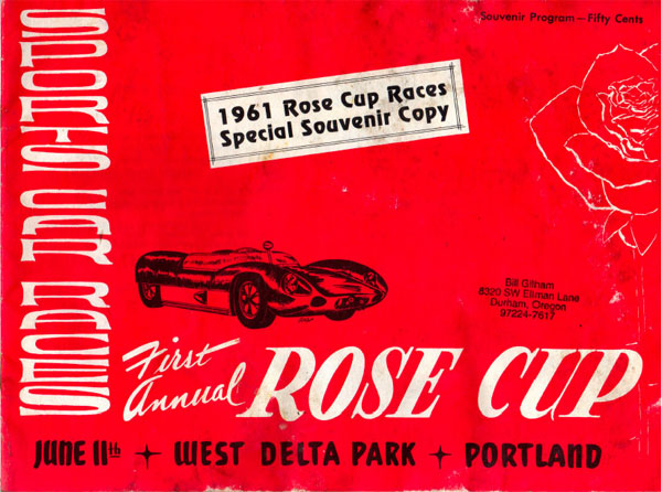 That’s when the newly-formed Cascade Sports Car Club got together with the Portland Rose Festival and organized a mid-June sports car race on the old roads. On the souvenir program for that event, some optimistic soul wrote “First Annual Rose Cup.”