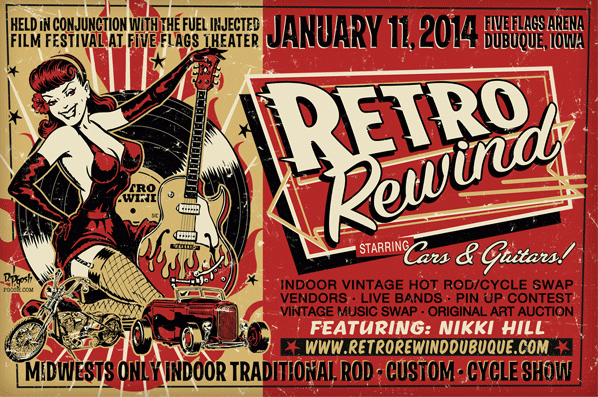 But let’s not stop there! The two-day event, starting at 9 a.m. Saturday, will be jam packed with special appearances by The Icons of Pinstriping, a hot rod art auction, rock and roll bands (including Nikki Hill!), a Fuel Injected Film Festival, swap meet (leave that billet gear home), a family-friendly pin up contest, real live haircuts (no hair designers, please)… Wells has thought of everything all you motorheads might enjoy during a cold winter weekend.