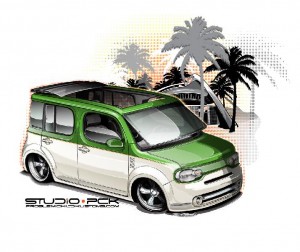 This cool Socal styled Nissan Cube is designed by hot rod and custom car designer Problem Child Kustoms artist Brian Stupski