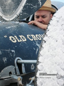 The traditional belly tank lakester has been a Bonneville favorite since Bill Burke fixed a war-surplus aircraft drop tank onto an early Ford chassis back in 1946. The natural streamline shape of the tanks, used during the war to hold extra fuel on aircraft which could then be jettisoned or “dropped”, was the perfect ready–made streamlined race car body. The Old Crow Team was put together specifically to maintain this tradition.
