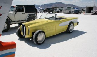 Chip Barbee's Hot Rod and Custom Car Pics from Bonneville Words and Pics by Chip "Teach" Barbee See the full hot rod gallery here. Chip's another friend from Bonneville Speed Week. I've seen him, shared the starting line, "media only" spot and had a great time getting to know him. This is his first time being published at MyRideisMe.com, so please make him feel welcome! "It's in the record books. The 65th annual (SCTA) Southern California Timing Association's Speed Week is History !!! Some records fell. The crowd was lively and the Hot Rods and Custom roamed the salt and local casino curse night with ease. Come along and take a look at my favorites from the salt and the Nugget car show." - Teach 1) So what do you do with that rusty 4-door Edsel your uncle Fred leaves you in his will ??? Break out ye old trusty Plasma Cutter, remove all the ugly and end up with this sweeet Edsel Roadster the we ran into everywhere during Speed week. 2) Who says imports can't be cool. NOT US this little custom is...