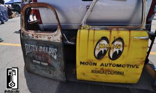 Hot Rod Art: Hand Painted and Lettered Old Truck Doors As soon as we stepped into the swap meet at the 2013 LA Roadster Show, we found Gary Crisp and his custom painted doors. In a time where patina is IN and faking patina is about a common as the real stuff, Gary’s work is tough to beat! Who knows what condition the doors were in when he got them, let’s figure they were rough… but the end product is outstanding! The lettering and art, even up close, look to be good’n old. Gary’s a custom painter by trade. Mostly hot rods and bikes from what he told me, but now he’s just having fun painting doors. As you can see, he’s fairly successful at it with a few of the doors already marked as “sold” and I heard an order for one happening as I waited to say hi. Get your own custom doors by reaching Gary by email. He’s a little old school when it comes to computers, so give him a few days to respond. Thanks Gary!...