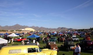 Mess-up fuel pump, lost air bleed screw for the new carbs, broken rocker stud, up all night getting ready for the show and sore-as-hell-legs. We had a great time! Here’s my recap of the 2007 Goodguys Show in Scottsdale, AZ. That all didn’t happen to me, I did change the fuel pump on my car, but probably didn’t need to. The new pump only hit about 1.5psi to start, then up to 3, back to 1, all over the place. Finally, she settled in and makes 3 psi as I’d hoped. My friend Joe helped out by taking this photo. By the way, your battery will go dead if you leave the pump on. sigh. For the big day, Saturday, we met at 6AM at a gas station. 6 of us left together headed north on the 101. Just as we hit the freeway, I decided I’d better get gas… duh, shoulda done that before. As soon as I got back on the road, I saw my pops and his friend Larry on the side of the road. Broken rocker stud. Larry had it at the show by 11!...